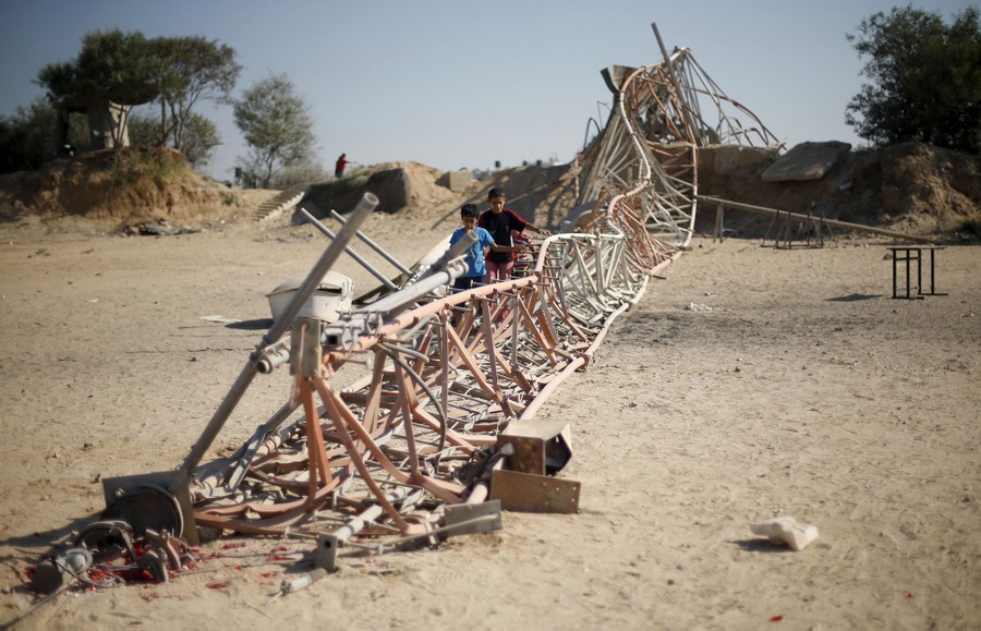 Read morePalestinian boys walk next to a destroyed communication structure at a training camp belonging to the Islamist group Hamas after it was hit by an Israeli airstrike in the northern Gaza Strip on September 19, 2015. Israel carried out airstrikes in the Gaza Strip on Saturday after Palestinian militants there fired rockets into southern Israel. #