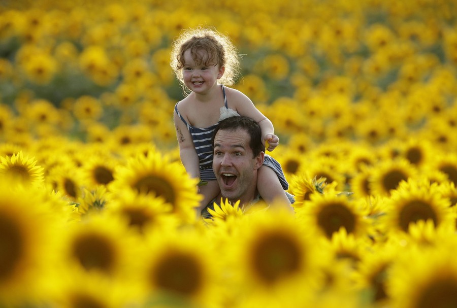 Read moreRawly Stanhope walks with his daughter Cambrin, 3, through a sunflower field near Lawrence, Kansas, on September 5, 2015. The 40-acre field, planted annually by the Grinter family, draws hundreds during the week-long late-summer blossoming of the flowers. #