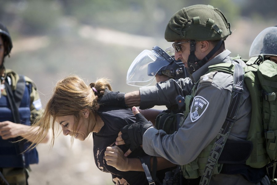 Read moreAn Israeli border police officer detains a Palestinian woman during a protest against the expansion of the nearby Jewish settlement of Halamish, in the West Bank village of Nabi Saleh near Ramallah, on September 4, 2015. #
