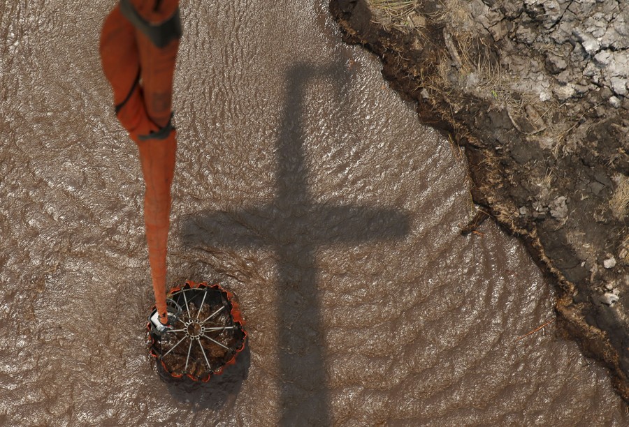 Read moreAn Mi-17 helicopter collects water from a canal to be used on a burning forest at Ogan Komering Ulu area in Indonesia’s South Sumatra Province on September 10, 2015. #