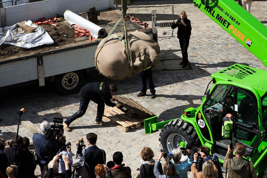Read moreWorkers unload the head of a sculpture of Russian revolutionary Vladimir Lenin for an exhibition of monuments in the citadel in Spandau district on September 10, 2015, in Berlin, Germany. The statue was over 19 meters tall and stood on Lenin Square in communist East Berlin before being removed by authorities after 1989, broken up into pieces, and buried in a forest outside Berlin. #