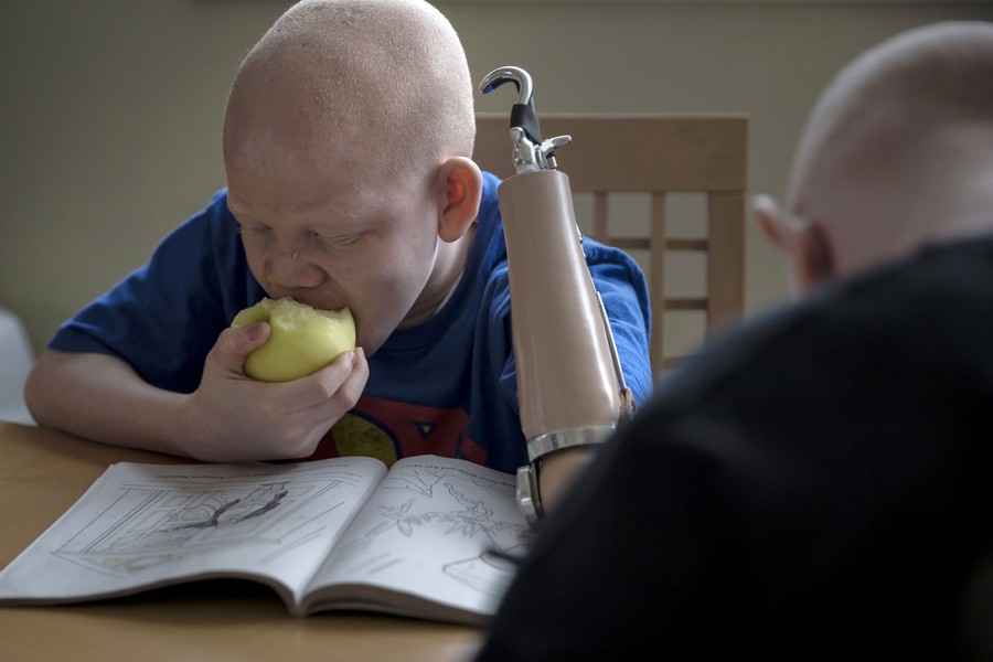 Children born with albinism in Tanzania live in constant danger of being attacked by people looking to profit from superstitious beliefs. About one in 20,000 people is born with albinism, lacking pigment in their hair, skin, and eyes. In Tanzania, according to reporting from the Thomson Reuters Foundation, albino body parts are highly valued in witchcraft and can fetch a high price: “Superstition leads many to believe albino children are ghosts who bring bad luck. Some believe the limbs are more potent if the victims scream during amputation, according to a 2013 United Nations report.” Reuters also notes, “The United Nations estimates about 75 albinos have been killed in the east African nation since 2000 and have voiced fears of rising attacks ahead of this year’s election, as politicians seek good luck charms from witch doctors." Reuters photographer Carlo Allegri recently documented the lives of several Tanzanian children receiving care in New York after being brutalized in their home country.