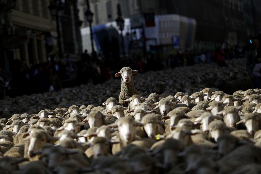 Read moreSheep are led by shepherds through Madrid’s city center in Spain, on October 25, 2015. Shepherds guided a flock of about 2,000 sheep through Madrid streets in defense of ancient grazing, droving and migration rights increasingly threatened by urban sprawl and modern agricultural practices. #