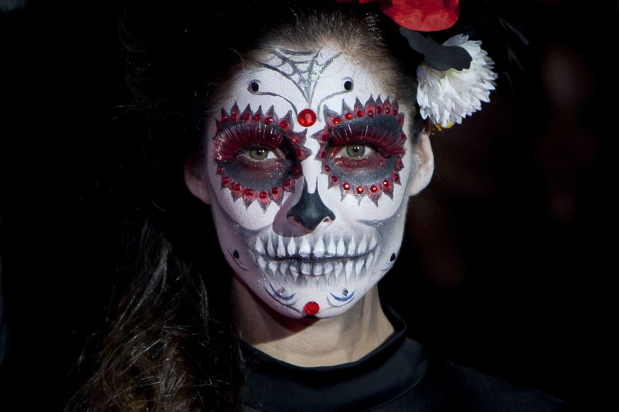 Read moreAn attendant dressed up with Mexican Catrina skull makeup during the premier of the latest James Bond movie Spectre at the Royal Theatre, in Madrid, Spain, on October 28, 2015. #