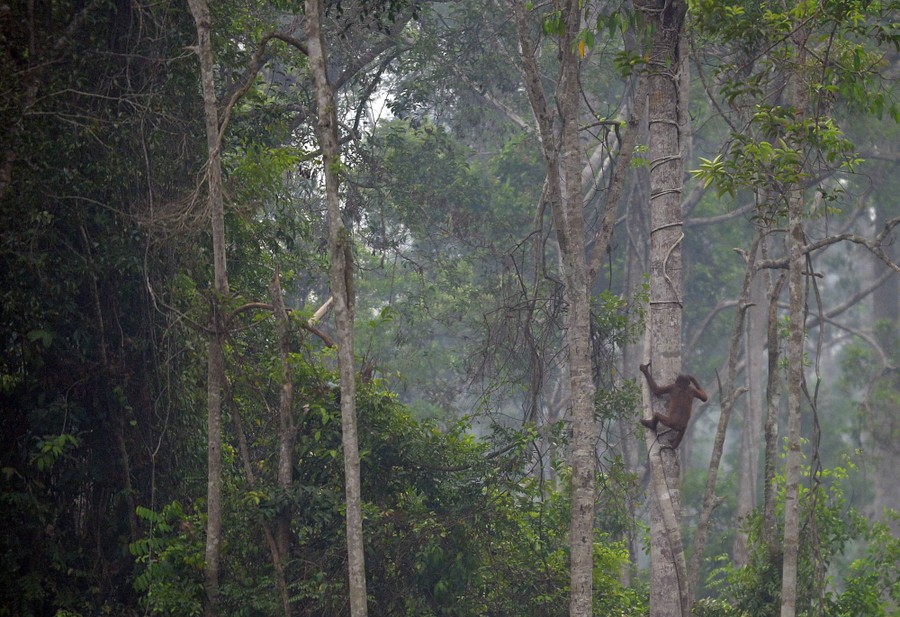 Read moreThis photo taken on October 26, 2015 shows an orangutan climbing a tree at a rehabilitation center operated by the Borneo Orangutan Survival Foundation, on the outskirts of Palangkaraya in Central Kalimantan, Indonesia. Endangered orangutans are falling victim to a devastating haze crisis that has left them sick, malnourished, and severely traumatized as fires rage through Indonesia's forests, reducing their habitat to a charred wasteland. #
