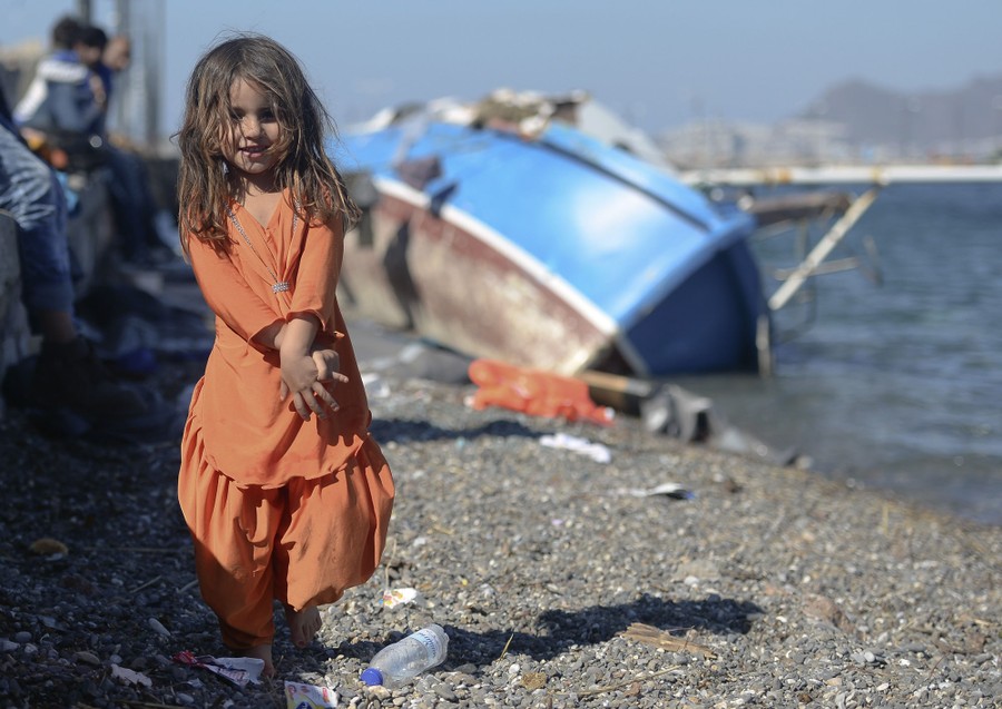Read moreFariba, age 3, from Afghanistan, pictured in Kos Harbor, where her family waits to be processed by the Greek police and given paperwork entitling them to leave the Greek island on October 26, 2015. #