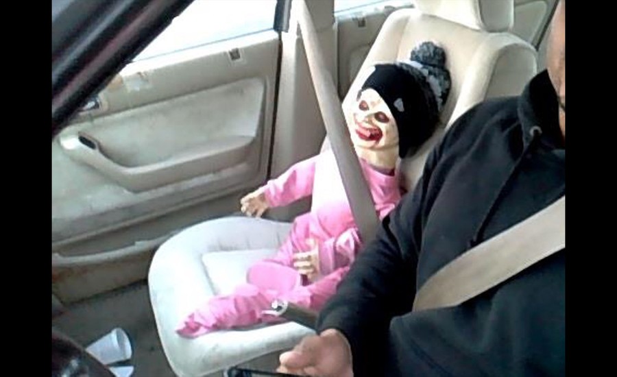 Read moreThis photo provided by Washington State Patrol shows a Halloween doll buckled up in the passenger seat of a car on October 27, 2015, in Tacoma, Washington. During Tuesday's morning commute, a trooper pulled over the man after he tried to use the doll as a passenger to gain access to the HOV lane of Interstate 5 in Tacoma. #