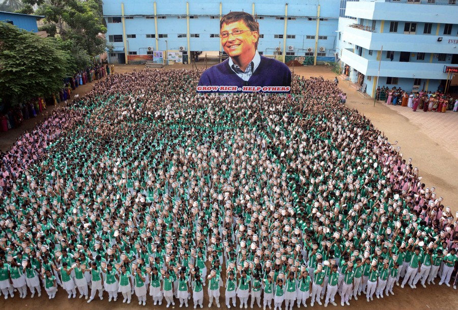 Read moreIndian schoolchildren hold masks with the face of Microsoft founder and philanthropist Bill Gates to mark his 60th birthday, at a school in Chennai on October 28, 2015. #