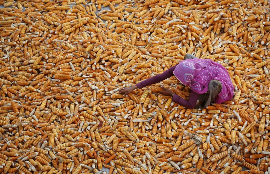 Read moreAn Indian farmer dries a maize crop at the village of Aloli, about 90 kilometers (56 miles) southeast of Ajmer, in India’s western state of Rajasthan, on October 8, 2015. #