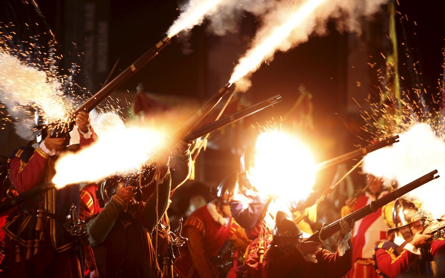 Read moreRe-enactors fire their muskets during a historical reenactment of the inspection of Fort St. Elmo during Notte Bianca (White Night) celebrations in Valletta, Malta, on October 3, 2015. #