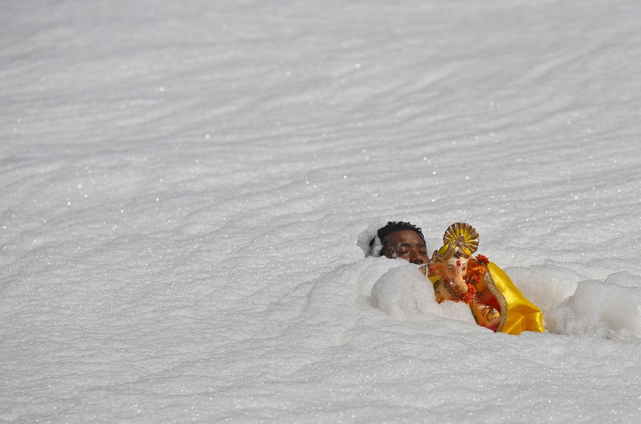 Read moreA devotee carries a statue of the Hindu god Ganesh, the deity of prosperity, to be immersed in the polluted waters of the river Yamuna on the last day of the Ganesh Chaturthi festival, in New Delhi, India, on September 27, 2015. #