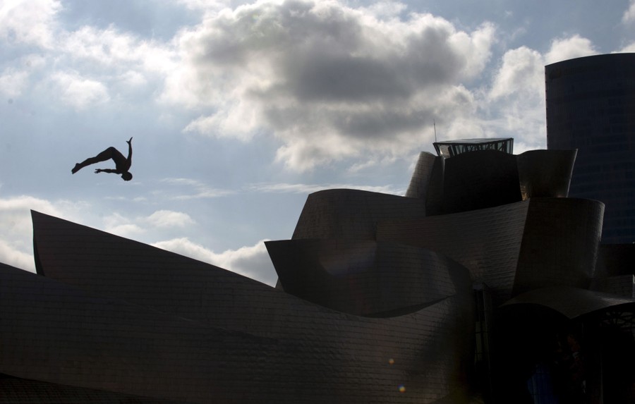 Read moreA participant dives from a 27.5-meter platform on the La Salve bridge, overlooking the Guggenheim Museum, during the finals of the Red Bull Cliff Diving series in Bilbao, Spain, on September 26, 2015. #
