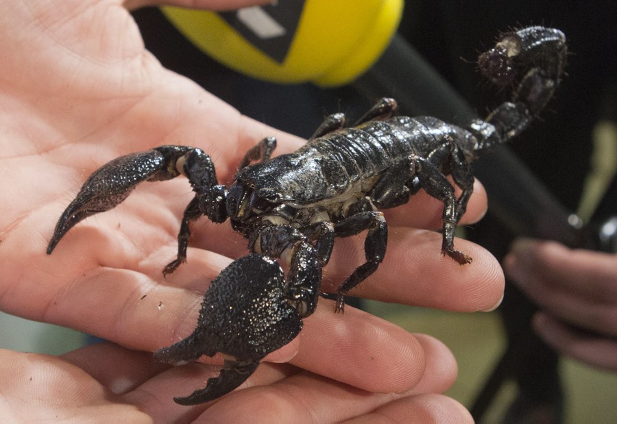 Read moreA tropical species expert shows a scorpion (Pandinus dictator) during a press conference in Paris, France, on October 1, 2015. On September 18 and 22, 115 scorpions, a protected species, were seized by customs officers at Paris’s Charles de Gaulle airport, coming from Cameroon and going to the United States. #