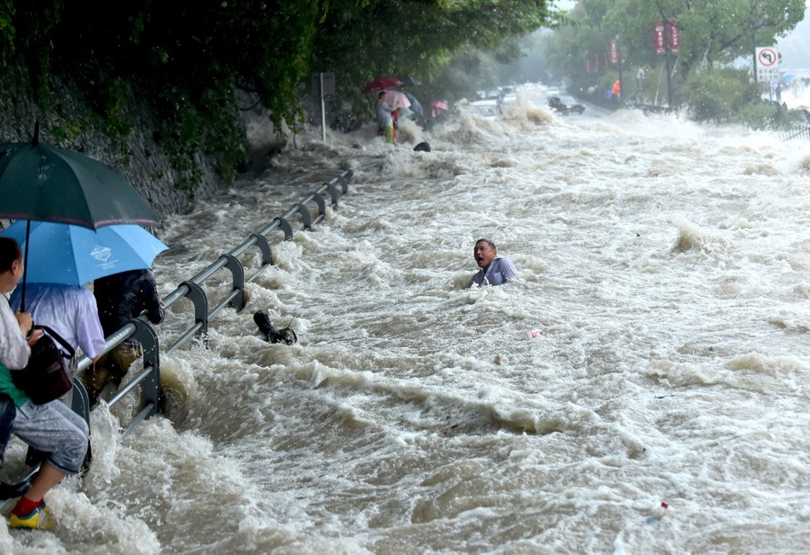 Read moreA tourist struggles in the water, before standing up and wading away, after a wave strengthened by the influence of Typhoon Dujuan hit a river bank in Hangzhou, Zhejiang Province, on September 29, 2015. #