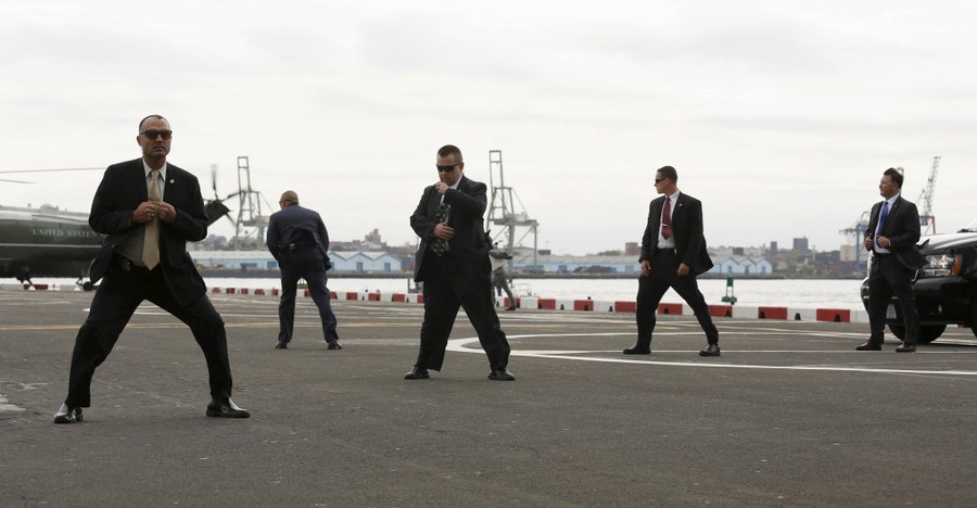 Read moreU.S. Secret Service agents brace themselves against the prop wash from Marine One as U.S. President Barack Obama arrives at the Wall Street Heliport in New York on September 27, 2015. #