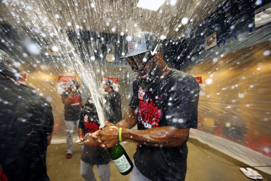 Read moreSt. Louis Cardinals' Jason Heyward pops the cork on a bottle after the Cardinals clinched the Central Division with an 11-1 win over the Pittsburgh Pirates in Pittsburgh on September 30, 2015. #