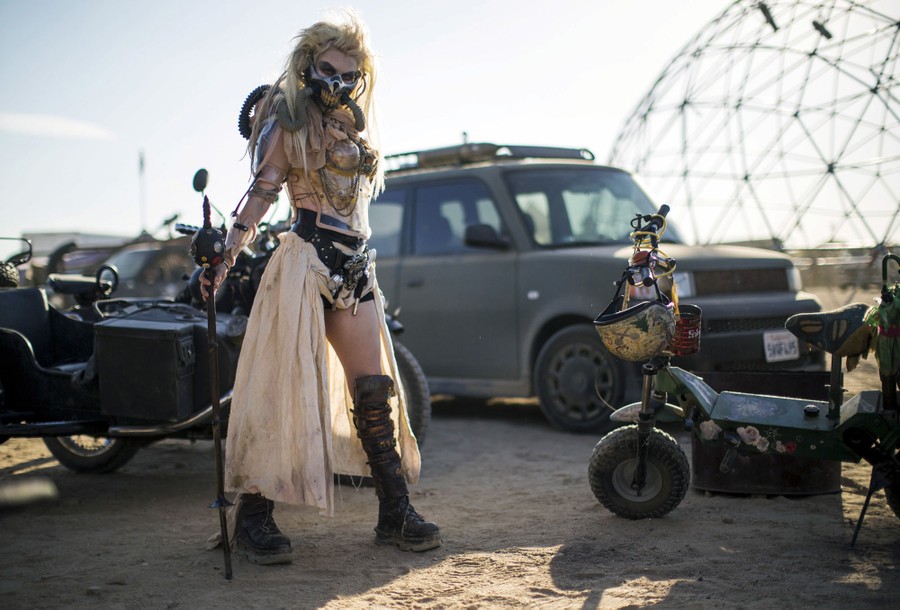 Read moreDesirae Hepp, dressed as Immortan Joe from Mad Max: Fury Road, poses for a portrait during the Wasteland Weekend event in California City, California, on September 26, 2015. The four-day event has a post-apocalyptic theme and is inspired by the Mad Max movie franchise. #