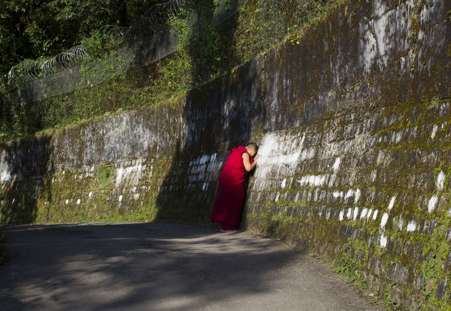 Read moreAn exiled Tibetan Buddhist nun prays, touching her head on a wall surrounding the residence of her spiritual leader the Dalai Lama in Dharmsala, India, on September 28, 2015. The Dalai Lama remains at the Mayo Clinic in Rochester after canceling his U.S. appearances for the month of October.The 80-year-old Tibetan Buddhist leader's office says he has canceled his planned U.S. visit next month after doctors advised him to rest. #