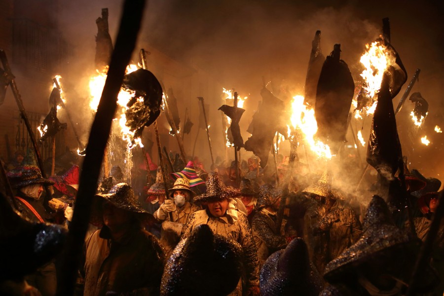 Read moreVillagers dress up in old clothes and cover their heads as they take part in the Civic Procession of El Vitor in the town of Mayorga in Valladolid, Spain, on September 28, 2015. Villagers from this small village in northern Spain burn leather wineskins that are hung from poles. Between the songs of worshipers, the cloud of smoke, the fire, and the smell of burnt fish pays homage to Santo Toribio, a missionary native to the village of Mayorga who was canonized in the 18th century. These acts of devotion are held in memory of the day that the villagers received the remains of the saint, in whose name the people went into the streets with flaming torches and lanterns. #