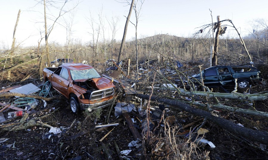 Read moreVehicles and debris are scattered in an area near Linden, Tennessee, on December 24, 2015. Several people were killed in Mississippi, Tennessee and Arkansas as spring-like storms mixed with unseasonably warm weather spawned rare Christmastime tornadoes in the South. #