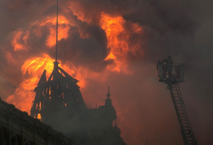 Read moreFirefighters work to douse the flames at the Portuguese Language Museum in Sao Paulo, Brazil, on December 21, 2015. According to the fire department, one firefighter died. #