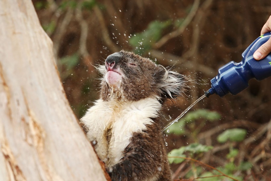 Read moreA heat-stressed koala hold still as a resident pours water on its back on December 19, 2015 in Adelaide, Australia. Adelaide is experiencing an extreme heatwave, with temperatures reaching over 40 degrees C (104 F) for five consecutive days. #