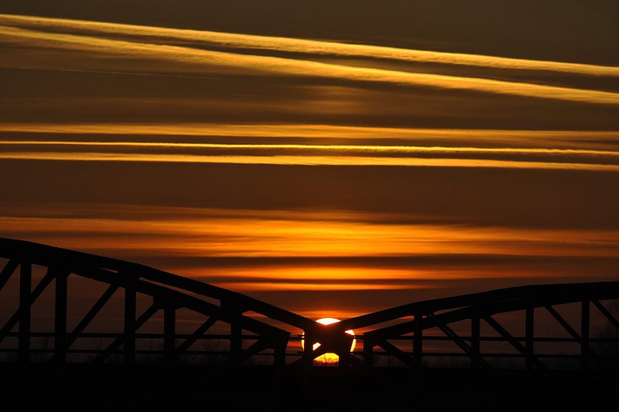 Read moreThe setting sun illuminates the silhouette of a rail bridge below a spectacular sky near Pocsaj, 268 km east of Budapest, Hungary, on December 23, 2015. #