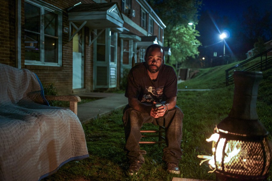Read moreCarl Elijah Johnson sits outside a friend’s apartment after work in the Pisgah View Peace Garden on May 4, 2014. The garden is run by Johnson and Sir Charles Gardner who both hope that it can encourage education, create jobs, and generate revenue within Pisgah View Apartments, a public housing development located in Asheville, North Carolina. #