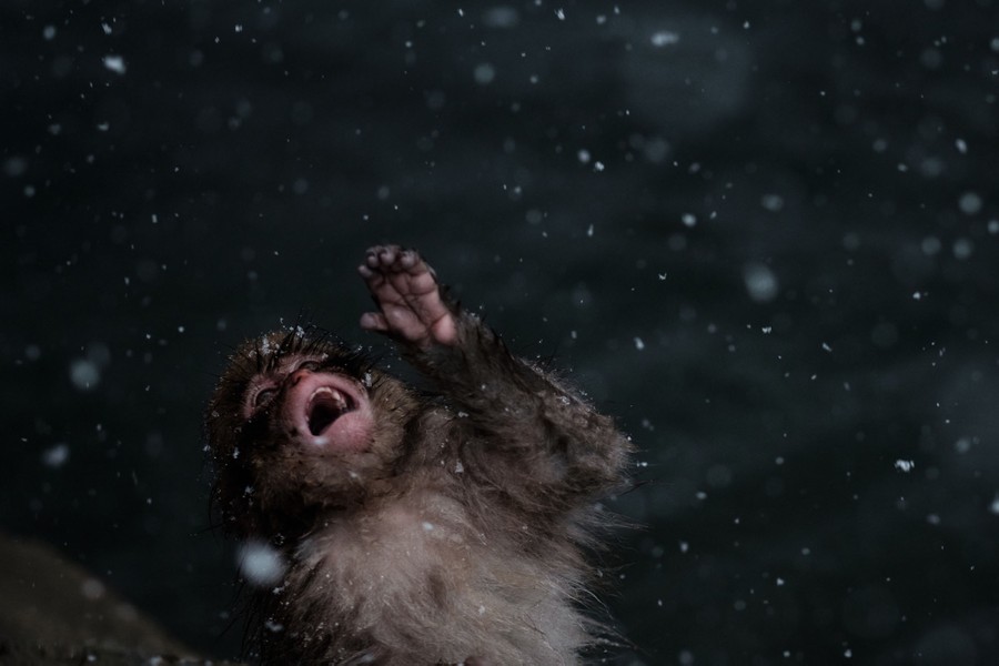 Read moreA juvenile Japanese wild monkey known as a “snow monkey” tries to eat snowflakes in a hot spring at the Jigokudani Wild Monkey Park in Yamanouchi town, Nagano prefecture, Japan on January 18, 2016. #
