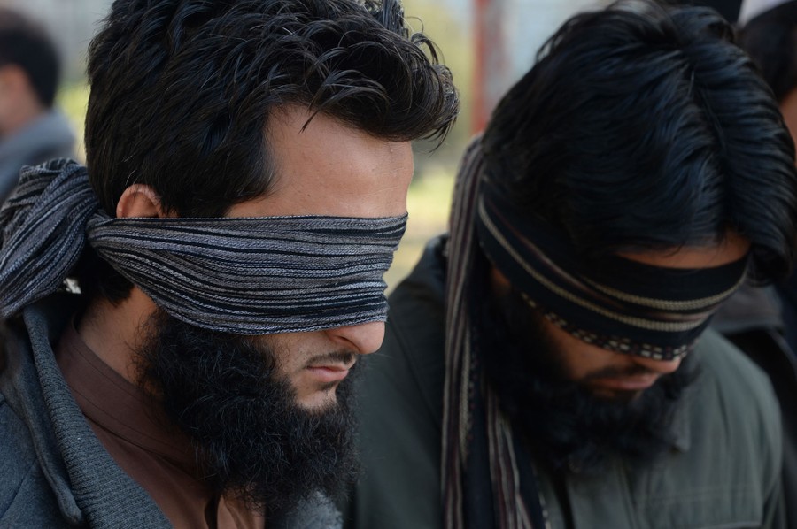 Read moreAlleged ISIS fighters stand handcuffed while being presented to the media at a police headquarter in Jalalabad, Nangarhar province, Afghanistan, on January 20, 2016. Afghan police said they arrested four alleged Islamic state fighters and two Taliban militants with their weapons, during an operation in Behsood district of Nangarhar province. #
