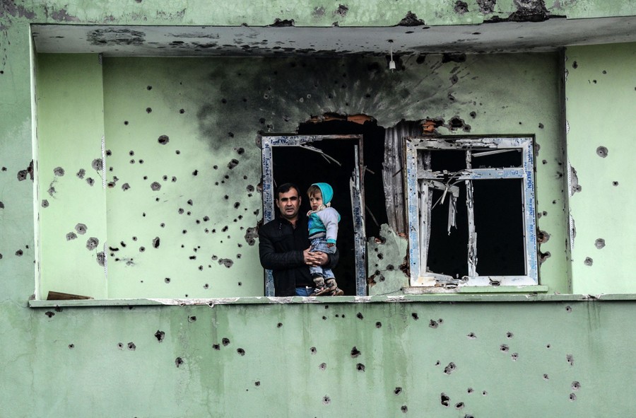 Read moreA man holding an infant stands on the balcony of a damaged house, after curfew ended in the southeastern Turkish town of Silopi on January 19, 2016. Turkey is waging an all-out offensive against the separatist Kurdistan Workers' Party (PKK), with military operations backed by curfews aimed at flushing out rebels from several southeastern urban centers. #