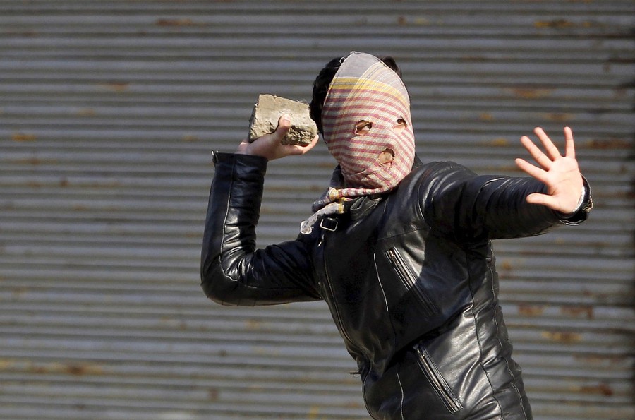 Read moreA Kashmiri Muslim demonstrator throws a stone towards Indian police (unseen) during a protest in Srinagar on January 21, 2016. Clashes between Indian police and Kashmir Muslim demonstrators broke out after a protest which was organised by the Jammu Kashmir Liberation Front (JKLF), a Kashmiri separatist party, to mark the anniversary of the killings of around 50 people allegedly by Indian security forces during a protest on January 21, 1990, demonstrators said. #