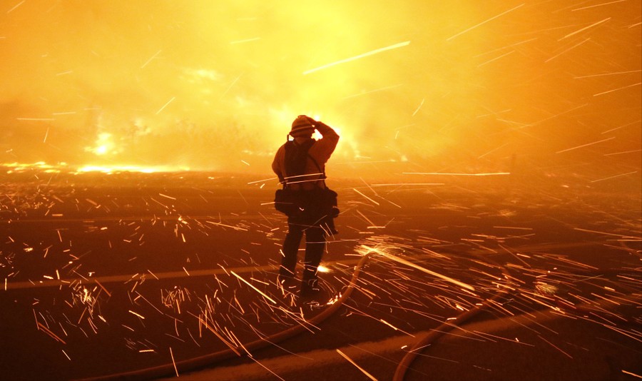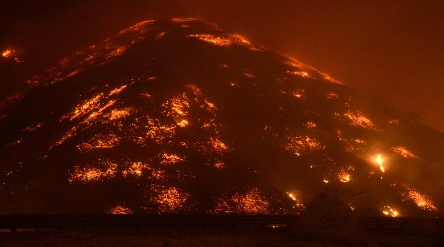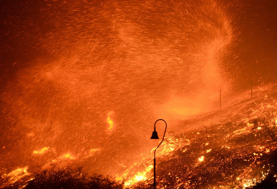 Read moreFire photographer Tod Sudmeier gets hit with flying embers from strong winds at the Solimar brush fire in Ventura County, California, on December 26, 2015. The wildfire burned over 1,000 acres of land, forced the closure of parts of two major highways and led to evacuations on Saturday, fire officials said. #