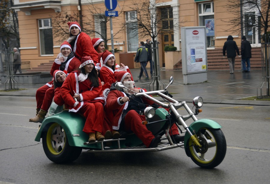 Read moreBosnian people dress up in Santa Claus costumes as they travel on a motorbike through the main street in Banja Luka, 240 kms northwest of Sarajevo, Bosnia, on December 30, 2015, to mark the upcoming New Year and Orthodox Christmas. #