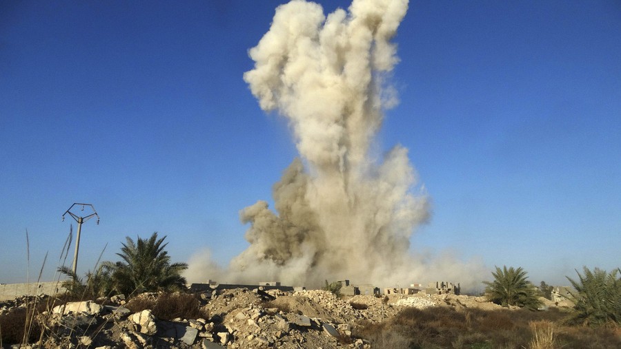 Read moreSmoke rises after Iraqi Security forces blew up a car bomb belonging to a suicide bomber with Islamic State group at Huz neighborhood in downtown Ramadi, 70 miles (115 kilometers) west of Baghdad, Iraq, on December 26, 2015. Iraqi forces entered the Huz at dawn, an area housing a government compound in the center of Ramadi, part of a major offensive aimed at dislodging the Islamic State terrorist militia from the western city, an Iraqi official said. #