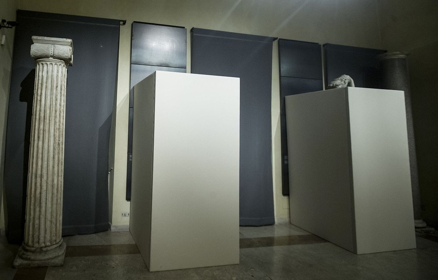 Read morePlywood panels cover nude statues inside the Campidoglio, Capitol Hill, during a meeting between Italian Premier Matteo Renzi and Iranian President Hassan Rouhani, in Rome, Italy, on January 25, 2016. #