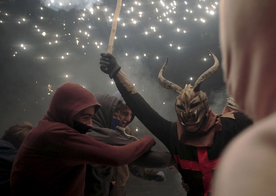 Read moreA reveler dressed as a devil holds a stick with fireworks during traditional Correfocs, fire runs, to mark the end of the local festivities in Palma, on the Spain's Balearic Island of Mallorca, on January 24, 2016. Correfocs are traditional celebrations in eastern Spain with people dressed as dancing devils while lighting fireworks among crowds of spectators. #