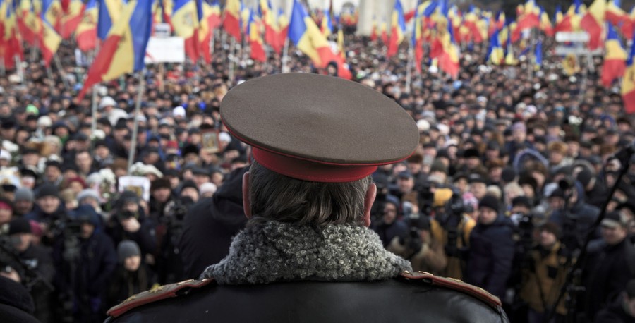 Read moreA Moldovan army general watches demonstrators during a large protest in Chisinau, Moldova, on January 24, 2016. More than 15,000 people gathered to protest against the government, demanding early elections in the impoverished East European nation, an action that comes after demonstrators stormed Parliament last week as lawmakers approved a new pro-European government. #