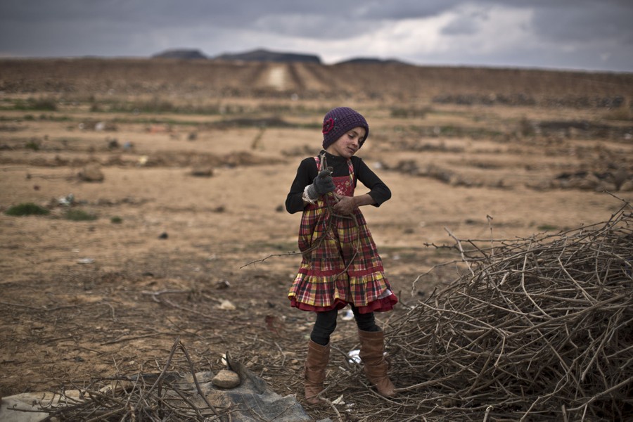 Read moreSyrian refugee Amneh Hassan, 9, collects wood for heating at an informal tented settlement near the Syrian border on the outskirts of Mafraq, Jordan, on January 23, 2016. #
