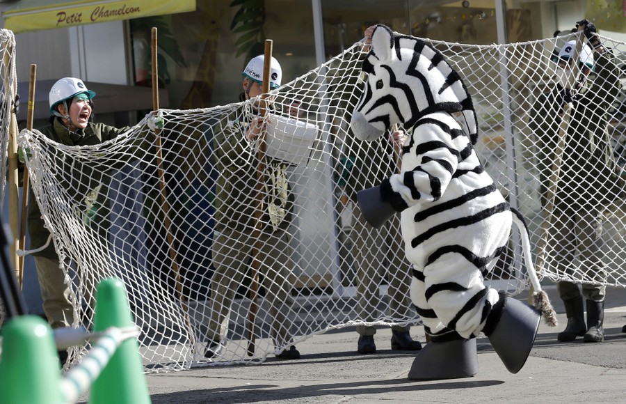 Revelers in Brazil prepare for Carnival, Dutch police train an eagle to capture drones in midair, a captured monkey menace in Mumbai, a kiss after a fight in London, Russian infantry training with reindeer, a mock zebra escape in a Tokyo zoo, a crane collapse in New York, and much more.