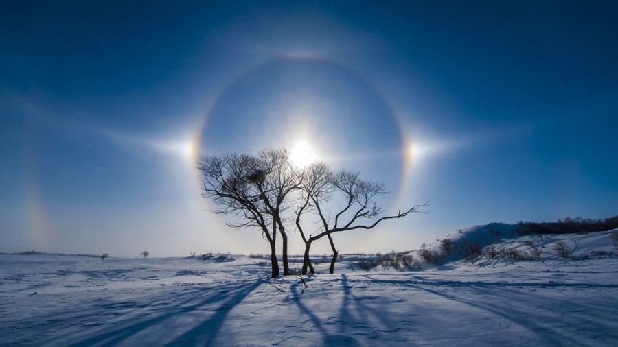 Read moreA halo forms around the sun, in the icy atmosphere over Hexigten Banner in north China's Inner Mongolia Autonomous Region, photographed on January 24, 2016. #