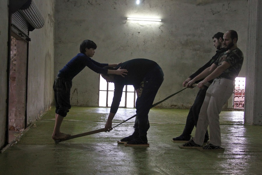 Read moreA rebel fighter, reportedly belonging to the Faylaq al-Rahman brigade, looks up from his hiding spot in the rebel-controlled area of Arbeen, on the outskirts of the Syrian capital, Damascus, on January 29, 2016. #
