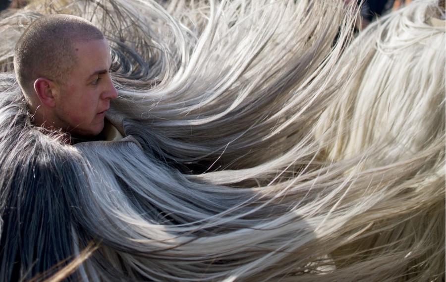 Read moreA dancer, known as “Kukeri,” performs on January 30, 2016, during the International Festival of the Masquerade Games in Pernik, near the capital Sofia. The three-day festival, which started on January 29, has participants sporting multi-colored masks, covered with beads, ribbons, and woolen tassels while the main dancer, sways while laden with bells to drive away sickness and evil spirits. #
