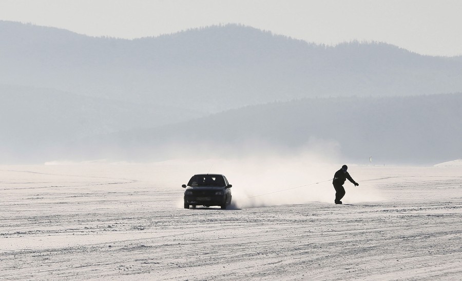 Read moreA car tows a snowboarder along the frozen surface of the Yenisei River in Taiga, with the air temperature at about minus 25 degrees Celsius (minus 13 degrees Fahrenheit), outside Krasnoyarsk, Siberia, Russia, on January 31, 2016. #