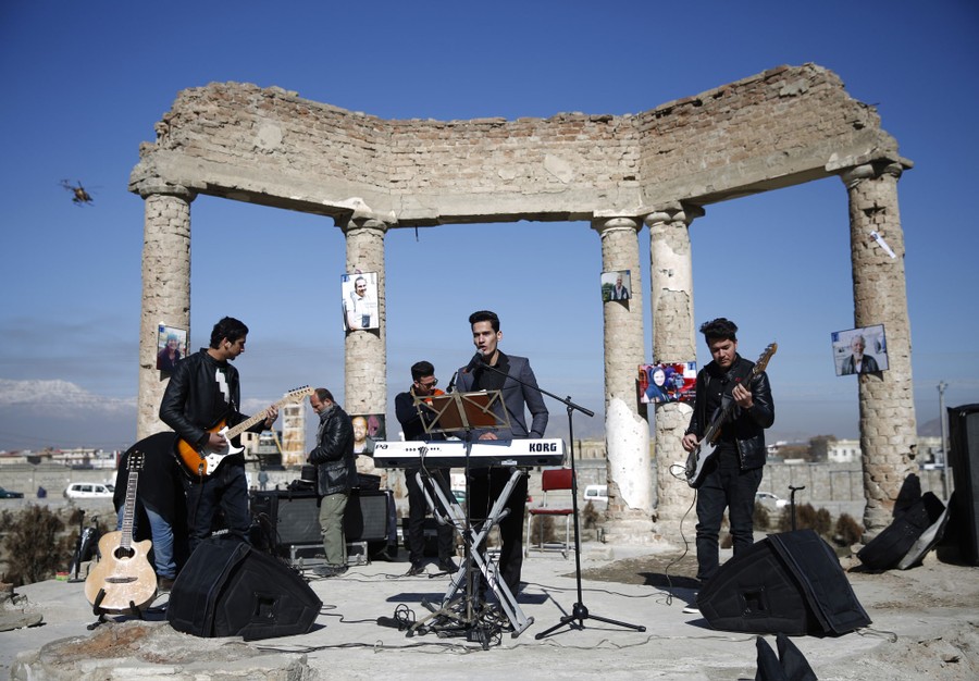 Read moreAn Afghan band performs at the ruins of Darul Aman palace in Kabul during a campaign called “One Thousand Smiles for Peace” by the Non-Violent World Organization on February 2, 2016. #