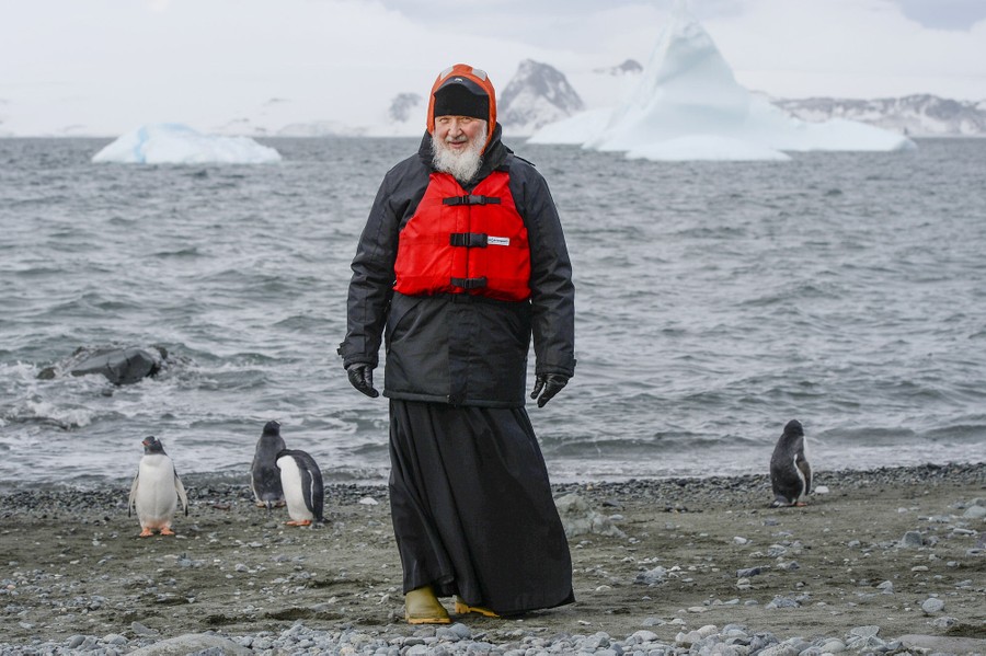 Read moreRussian Orthodox Church Patriarch Krill poses among penguins at the Bellingshausen station at King George Island of Waterloo, Antarctica, on February 17, 2016. #