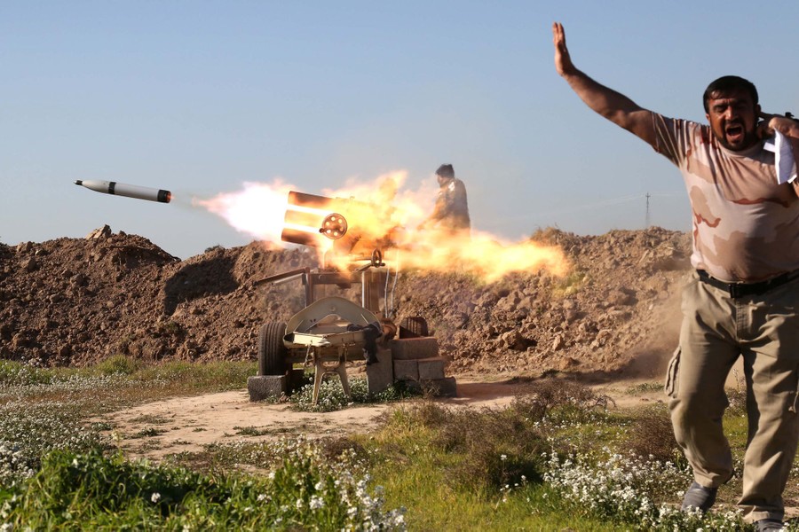 Read moreA fighter from the pro-government Popular Mobilization units covers his ears as he sets off a rocket launcher in the village of Taz Khurmatu, on the southern outskirts of the northern Iraqi city of Kirkuk, as they try to recapture the nearby village of al-Bashir from ISIS jihadists on February 16, 2016. #