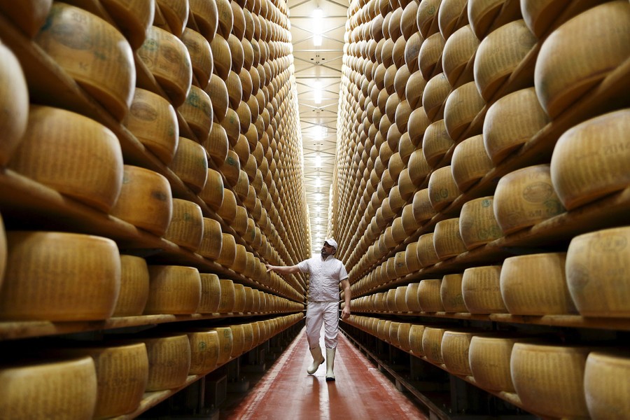Read moreA worker inspects wheels of parmesan cheese at storehouse belonging to the 4 Madonne Caseificio dell'Emilia dairy cooperative in Modena, Italy, on February 16, 2016. When parmesan prices proved too volatile for Italy's strained banks a dairy cooperative near Bologna came up with a novel solution to its funding needs: bonds backed by wheels of cheese. But 4 Madonne Caseificio dell'Emilia remains an exception among small businesses struggling to get long-term funds in Italy, where a credit crunch risks holding back a fragile economic recovery after more than a decade of stagnation. #