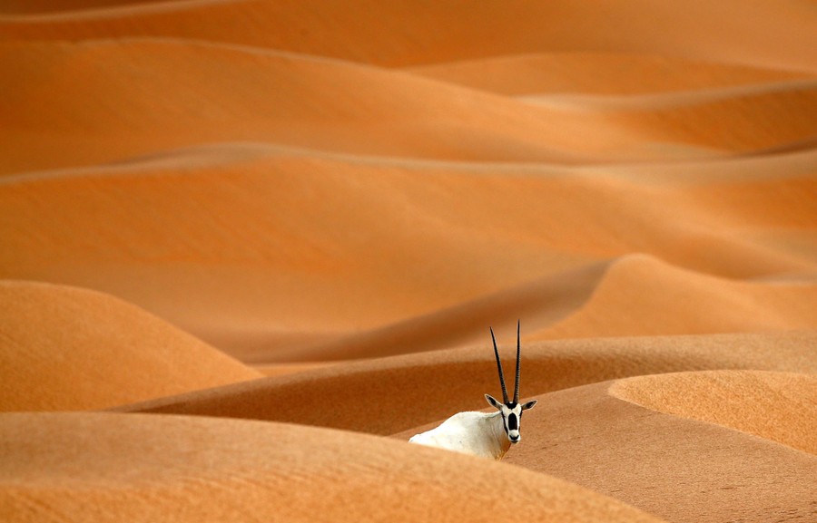 Read moreAn Arabian Oryx in the Arabian Oryx Sanctuary in Umm Al-Zamool, 290 kilometers south of Abu Dhabi, near the border with Oman and Saudi Arabia, on March 1, 2016. The sanctuary which is reserve for many different animals stretches over an estimated area of 8,900 square kilometers and currently hosts nearly 155 Arabian Oryx, which were reintroduced into the its natural habitat in the U.A.E in a five-year conservation plan launched by the U.A.E's late ruler Sheikh Zayed bin Sultan Al Nahyan. #