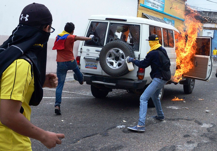 Read moreStudents set a vehicle of the state company Petroleos de Venezuela on fire during a protest against Venezuelan President Nicolas Maduro's government, following the Supreme Court's decision to limit the opposition-controlled National Assembly powers, in San Cristobal, Venezuela, on March 3, 2016. #